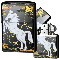 令和八年度干支「午」黒チタンモデル メタリックな輝きのあるブラックチタンコーティングが施された表面に、プリントにて躍動感のある馬がデザインされています。ベース:#200(標準モデル) 加工:ブラックチタンメッキ、プリント※表面加工の特性上、加工工程や袋の出し入れ等で細かな傷がつくことがありますが避けることができません。あらかじめご了承ください。 |