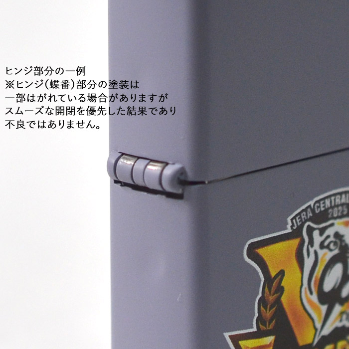 | 阪神タイガース2025年リーグ優勝を記念した、数量限定の特別なZIPPOです。 ユニフォームと同じグレーのマットカラーコーティングされたベースジッポーに今年の優勝記念デザインをプリントしたスペシャルバージョン 50個のみの限定生産で、2025年にちなんで、側面にシリアルナンバー「〇〇/2025」が刻印されています。(刻印の上からカラーコーティングしているので少し見えにくくなっています。ナンバーはお選びいただけません。写真は一例です)ラグジュアリーな専用ボックス付き。 |
