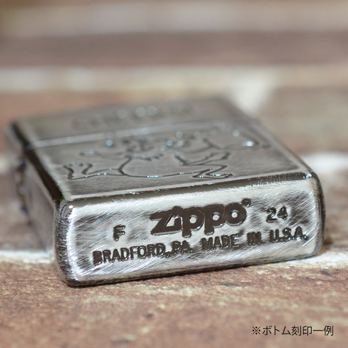| ベース:#200(標準モデル) 加工:片面エッチング、銀メッキイブシ仕上げ、ユーズド加工、裏面は無地 ※いぶし仕上げやユーズド加工のかかり具合はひとつずつ異なります。また、一部黒い部分がある場合がありますが、いぶし加工によるものですので不良ではありません。 ※ボトム(底部)刻印は製造年月を表しています。特記されていない限り、写真は一例で、お届けするものと刻印が異なる場合があります。  |