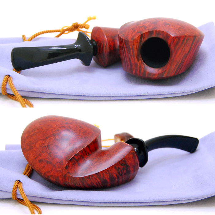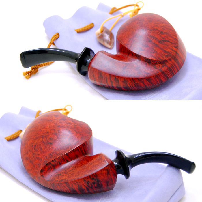 ハンドメイドならではの大胆なフォルムが格好いい。どの角度から眺めても表情が変わるのでいつまでも楽しめます。 ハンドメイドの一点モノは「特別なプレゼント」にもぴったりです。 フィルター: なし 全長:約 134mm 火皿の深さ:約 48mm 火皿内径:約 19mm 重さ:約 81g ※専用袋・箱あり ※オリジナルステッカー付き |