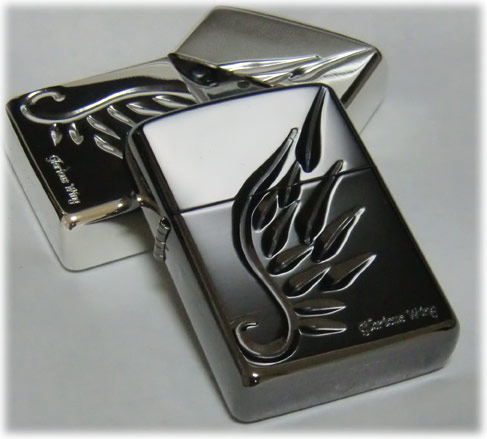 | 【LEGEND OF ARMOR】 レジェンド・オブ・アーマー 鏡面仕上げのZIPPOにこれでもかと大胆に深彫りされたのはまるで象形文字のような「天使の羽」 |