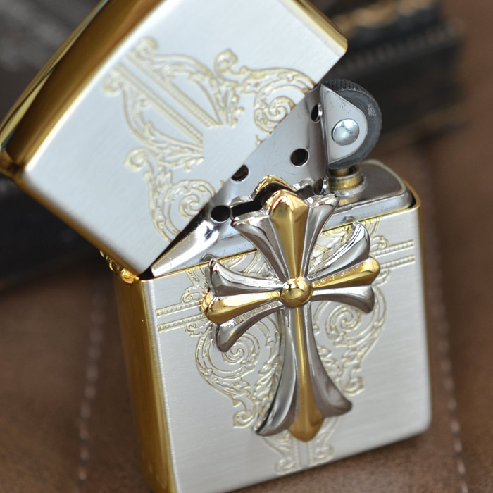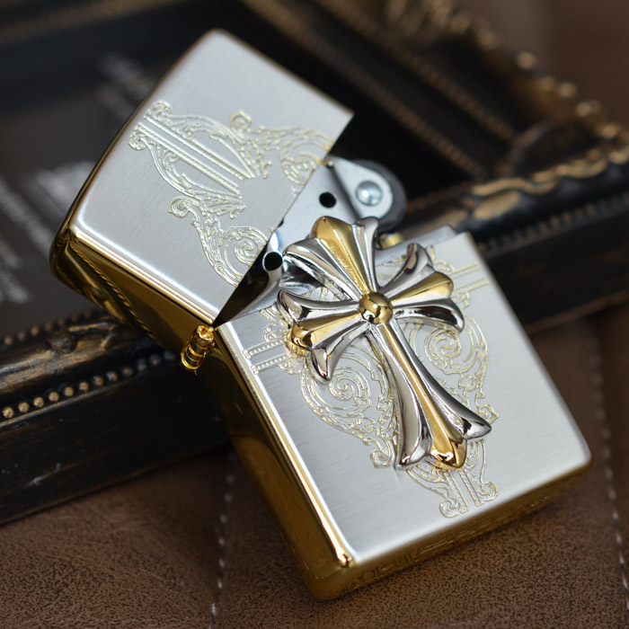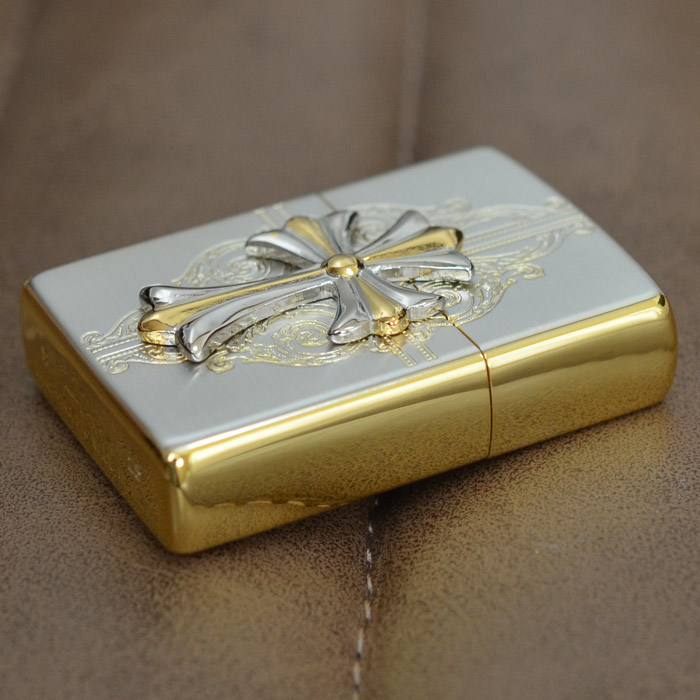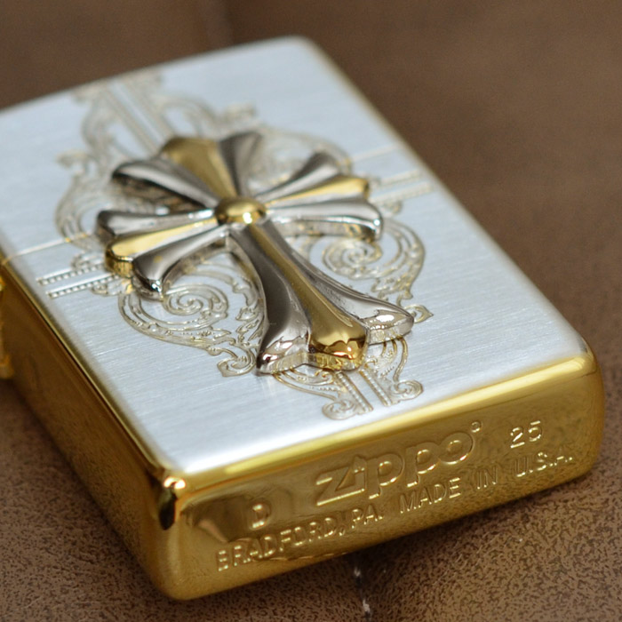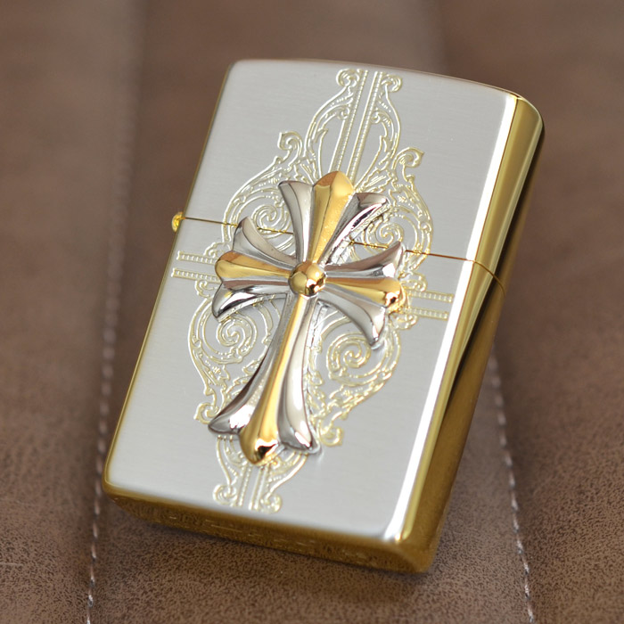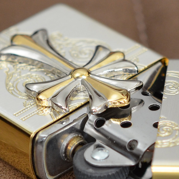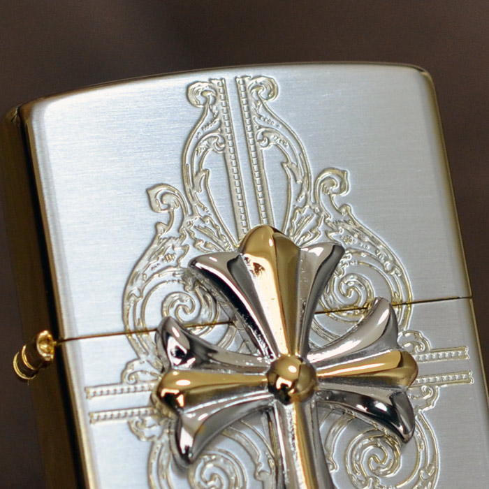 | おもてと裏は上品な輝きを放つシルバーメッキ・サテン(艶消し)仕上げ、側面は華やかな印象の金メッキ鏡面仕上げという高級感漂うコンビメッキが施されたベースジッポーに、これまたシルバーとゴールドのコンビメッキのメタルが大きく配された、なんともラグジュアリーなジッポー。 加工:SGメッキ+エッチング+メタル貼り(銀イブシメッキ/金Wメッキ)、裏面は無地 ※表面加工の特性上、加工工程や袋の出し入れ等で細かな傷がつくことがありますが避けることができません。 ※メタル取れの修理はご使用期間に関わらずお受けできません。万が一取れてしまった時はご自宅で接着剤で再接着してください。また、メタル取れによる紛失も保障いたしかねますことご了承ください。※写真にうつるライター以外の小物は、商品には含まれません。 ※ボトム(底部)刻印は製造年月を表しています。特記されていない限り、写真は一例で、お届けするものと刻印が異なる場合があります。 |
