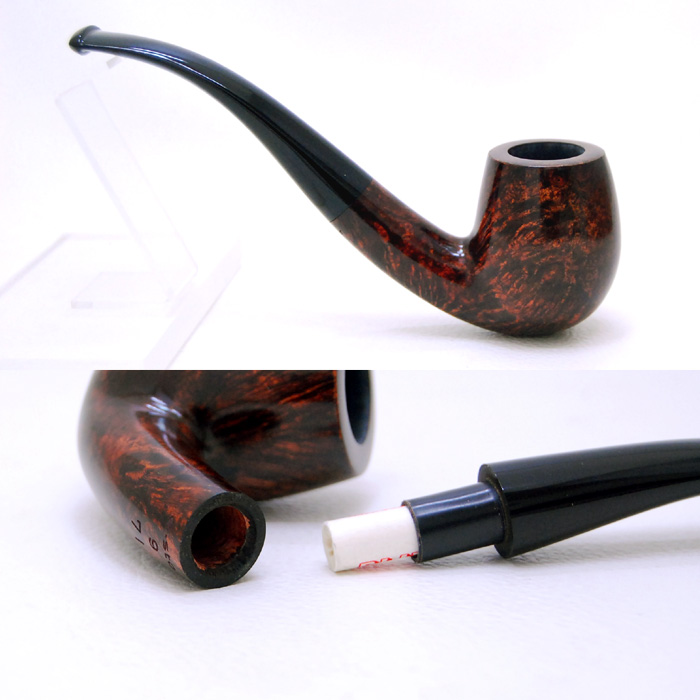 ビリヤードは細身でスタイリッシュ、ベントタイプはボトムからシャンクにかけてのフォルムが柔らかく美しい。 フィルター: 9mm 全長:約 147mm 火皿の深さ:約 39mm火皿内径:約 18mm 重さ:約 45g |