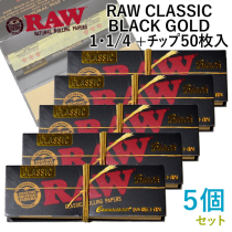 RAWペーパーCLASSIC BLACKクラシック・ブラックゴールド1 1/4 +チップ各50枚入×5個セット長さ76mm×幅44mm(約)