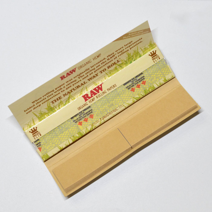 | RAW ORGANIC HEMP オーガニックヘンプ・シリーズは有機栽培ヘンプを素材に塩素漂白剤や化学漂白剤を使用せずにヘンプ100%で作られたローリングペーパーです。特徴は半透明でやや斑な白いヘンプ繊維色。クラシックシリーズと同様に紙には特許である格子状の透かしが入り、この透かしによって不均一なたばこの燃焼を防ぎ、均一でスムースな燃焼を維持します。RAWオーガニックはヘンプの茎の中央部分にある白く細かい繊維を原料にしているので、雑味の無いクリーンな吸い心地と、たばこ本来の味をより純粋に味わうことができます。 キングサイズスリム 長さ110mmで 1 1/4ペーパーと同じ幅。長いたばこが好きな人におすすめサイズ。往年のキングサイズペーパーは、幅があり過ぎて無駄な部分があったので、幅をよりスリムにしたのが、キングサイズスリムペーパーです。 ペーパーサイズ:長さ約110mm × 幅約44mm RAWチップス 無添加・無漂白の植物繊維を材料に、伝統的なワイヤパートがコンベア状の長綱型抄紙機で製造しています。多少濡れても形と硬さを保つ構造になっており、繊維の目に沿うよう丁寧に紙を揃えてカットしています。これがスムースに巻けるRAWチップスの特徴です。 チップサイズ:長さ約54mm×幅約20mm 内容量:ペーパー32枚+チップ34枚入り /1個 × 3個セット |